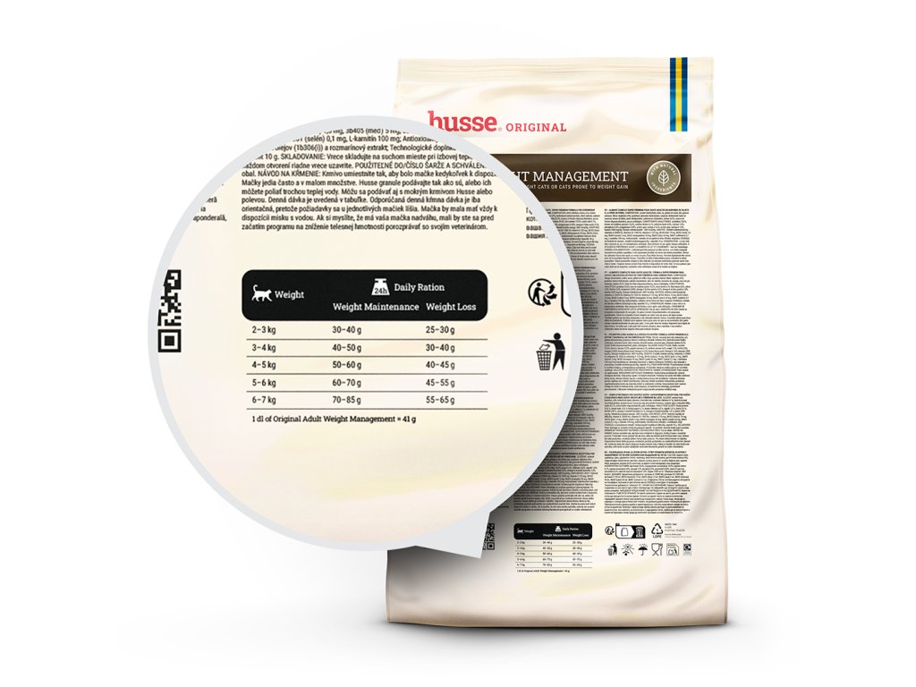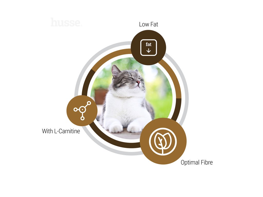Pomozte své kočce udržet si ideální kondici bez kompromisů v chuti ani výživě. Husse Adult Weight Management je kompletní superprémiové granulované krmivo určené pro dospělé a starší kočky s nadváhou nebo se sklonem k přibírání. Přidaný L-karnitin podporuje metabolismus tuků, optimální obsah vlákniny zajišťuje pocit sytosti a zdravé trávení a snížený obsah tuku pomáhá při redukci či udržení hmotnosti. Receptura je navíc obohacena o taurin, prebiotika a antioxidanty, které podporují zdraví srdce, imunitu a vyváženou střevní mikroflóru — aby byla vaše kočka fit a v dobré kondici.