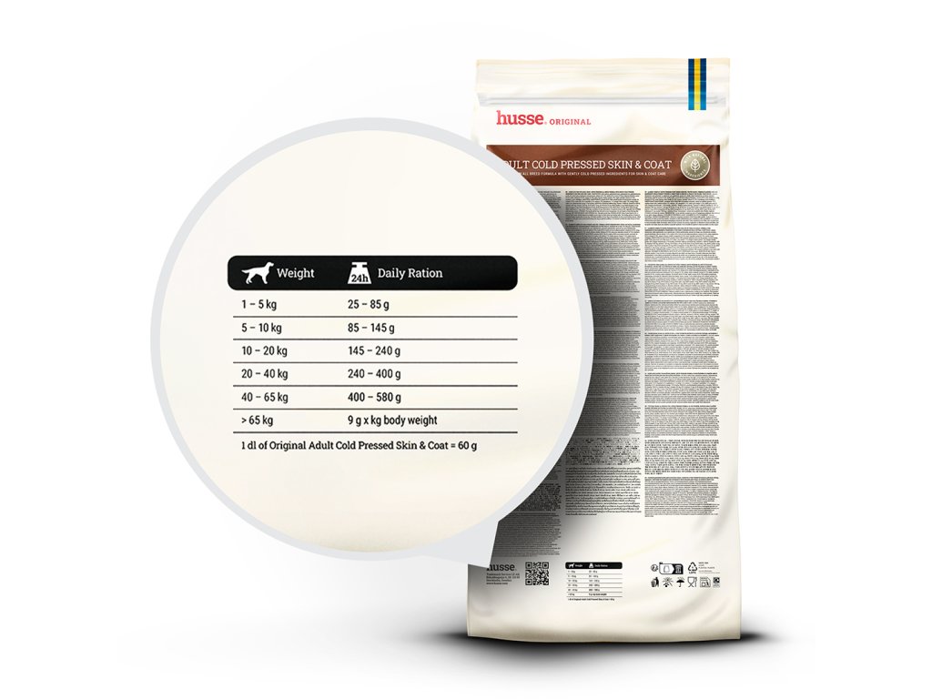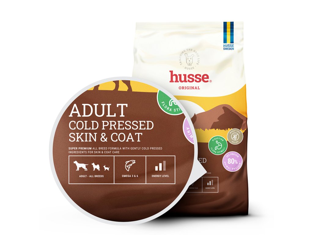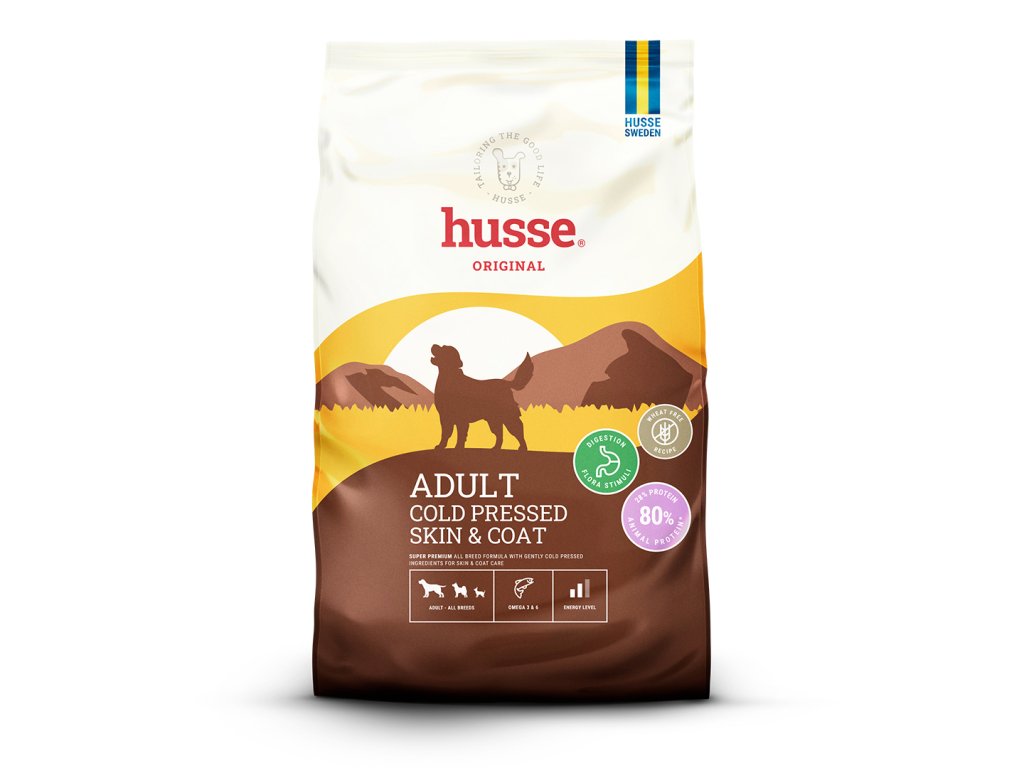 Husse Adult Cold Pressed Skin & Coat je superprémiové kompletní krmivo, které pečuje o kůži a srst vašeho psa každý den. Díky jemnému lisování za studena si suroviny zachovávají maximum živin, chuti i přirozené kvality – pro viditelné výsledky a skvělou kondici.