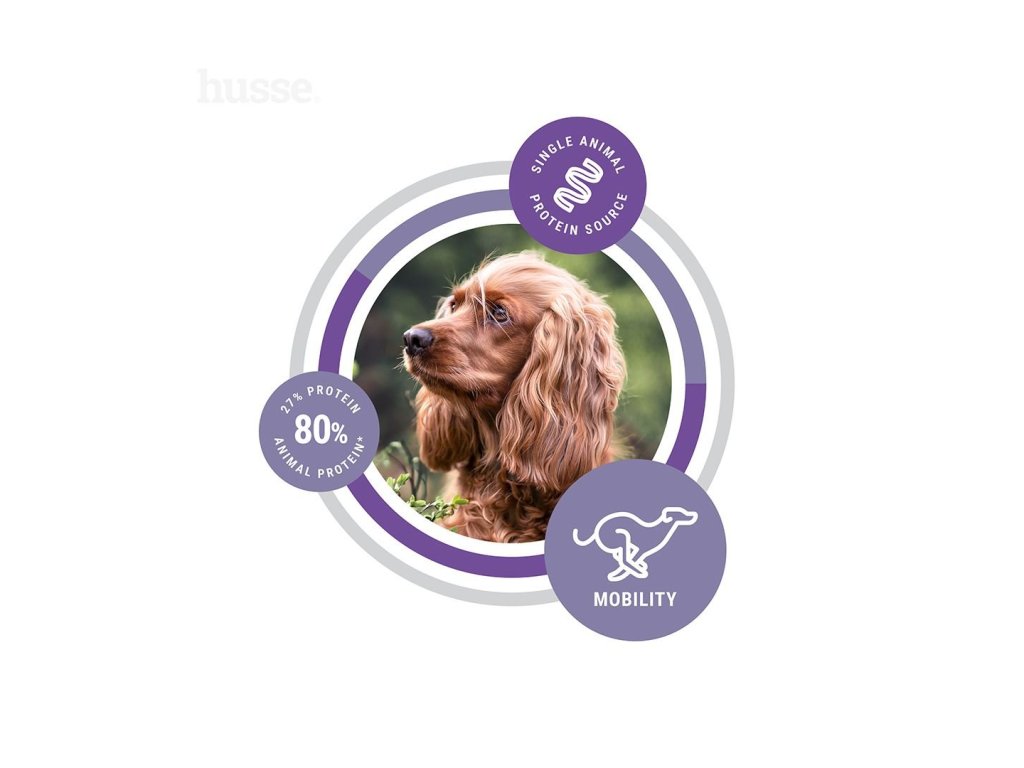 Hypoalergenní a vysoce stravitelné suché krmivo vyrobené z kvalitních surovin, které pomáhá udržovat a zlepšovat pohyblivost kloubů. Obohaceno o jedinečnou směs Husse Flexcare™, díky níž si váš pes naplno užije každý krok, hru i dobrodružství!