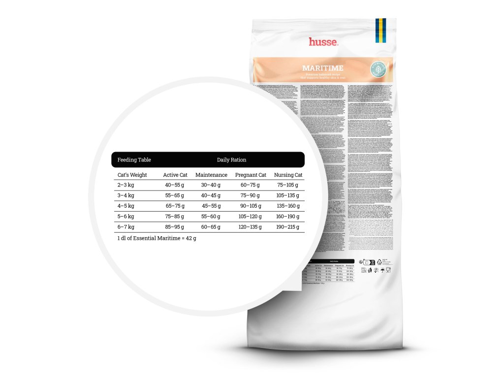 Husse Maritime je výživné a snadno stravitelné krmivo, které můžete své dospělé kočce podávat denně. Receptura bohatá na bílé ryby, vynikající zdroj omega-3 a omega-6 mastných kyselin - důležitých živin pro zdravou kůži, lesklou srst a celkové zdraví vaší kočky.